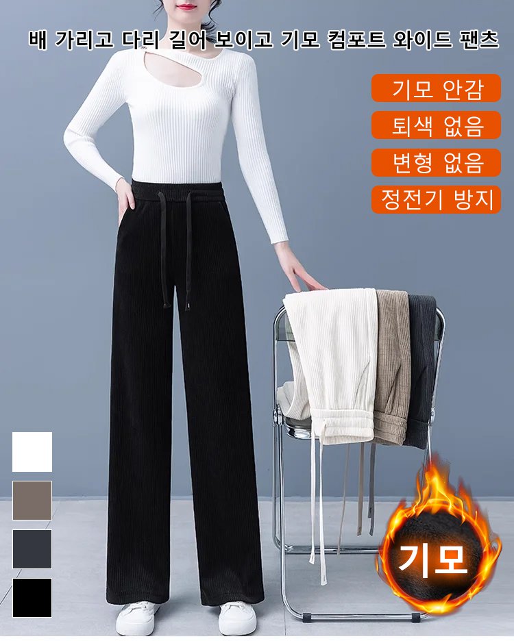 배 가리고 다리 길어 보이고 기모 컴포트 와이드 팬츠